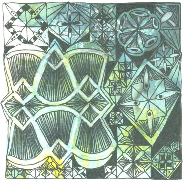 Adeles Thema der Woche ist DingsplatZ, ein neues Muster aus der Zentangle-Zentrale. Dieses Muster ist gedacht, andere zu umrahmen und bietet deshalb viele Variationsmöglichkeiten.